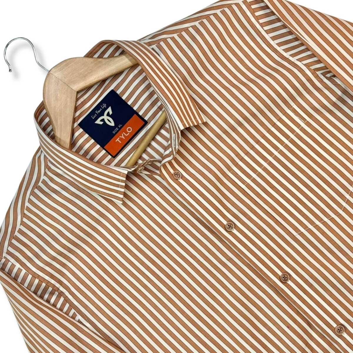 The TYLO Caramel Stripe Shirt is crafted from premium cotton fabric for a soft, breathable, and comfortable feel. The bold vertical stripe design with a functional chest pocket gives it a smart and stylish look—perfect for office, casual wear, or festive occasions.