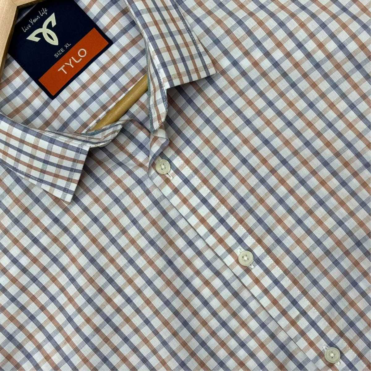 The TYLO Shirt is made from fancy cotton fabric, offering a soft, breathable, and lightweight feel. The subtle check pattern with a clean no-pocket design gives it a smart and modern look—perfect for office or everyday wear.