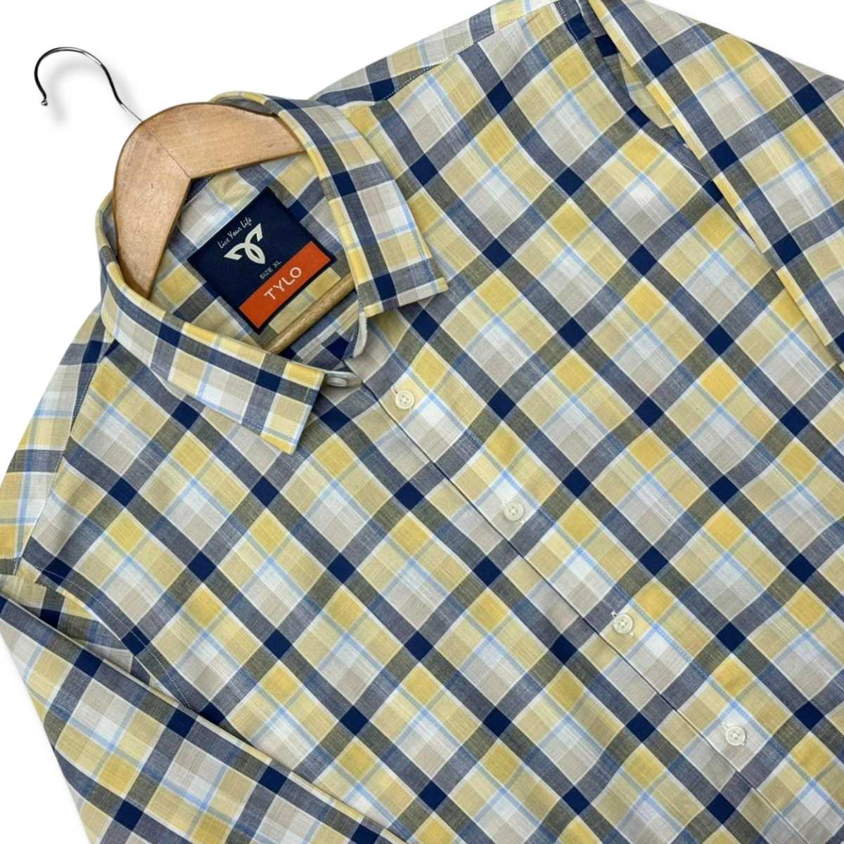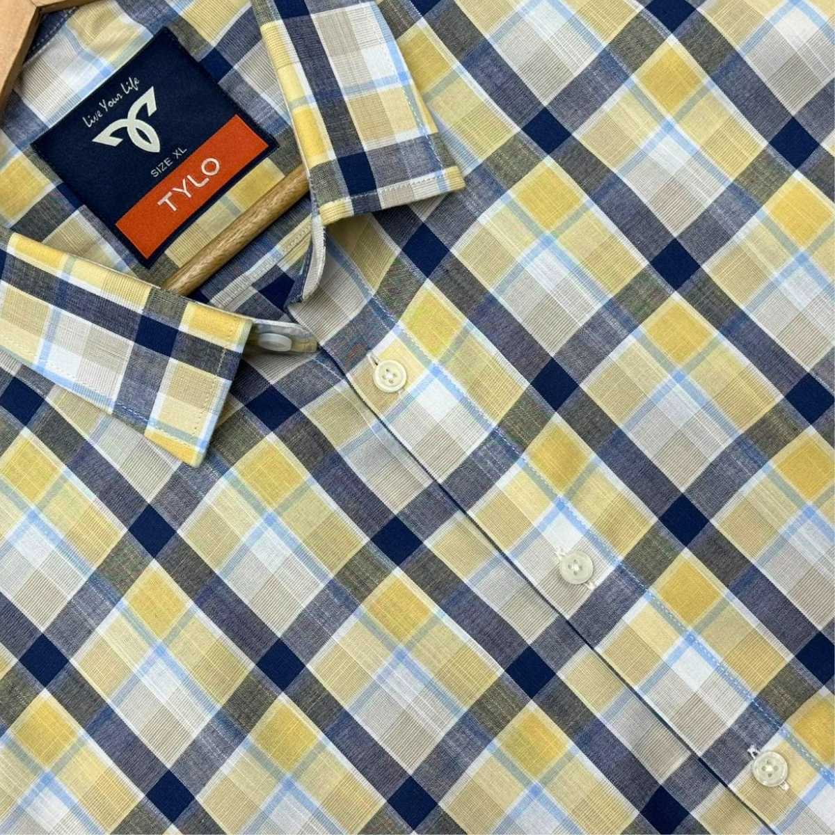 The TYLO Shirt is made from fancy cotton fabric, offering a soft, breathable, and lightweight feel. The subtle check pattern with a clean no-pocket design gives it a smart and modern look—perfect for office or everyday wear.